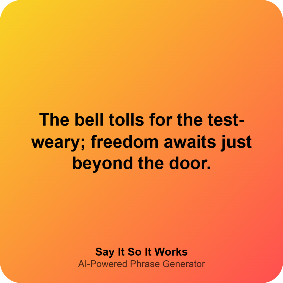The bell tolls for the test-weary; freedom awaits just beyond the door.
