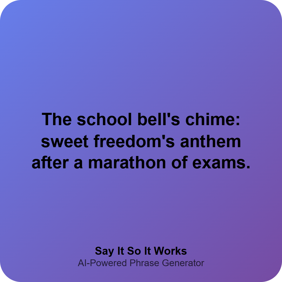 The school bell's chime: sweet freedom's anthem after a marathon of exams.