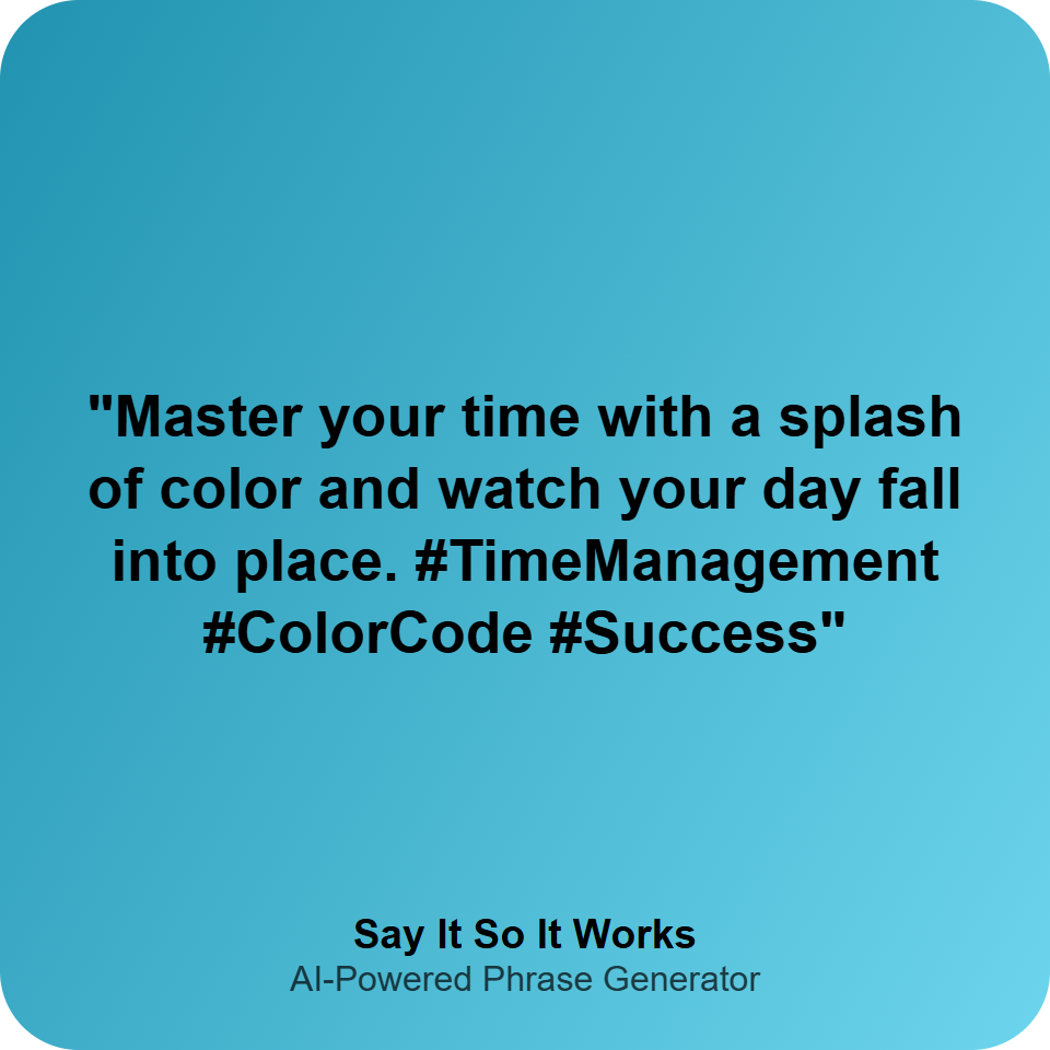 "Master your time with a splash of color and watch your day fall into place. #TimeManagement #ColorCode #Success"