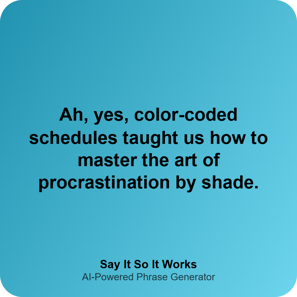 Ah, yes, color-coded schedules taught us how to master the art of procrastination by shade.