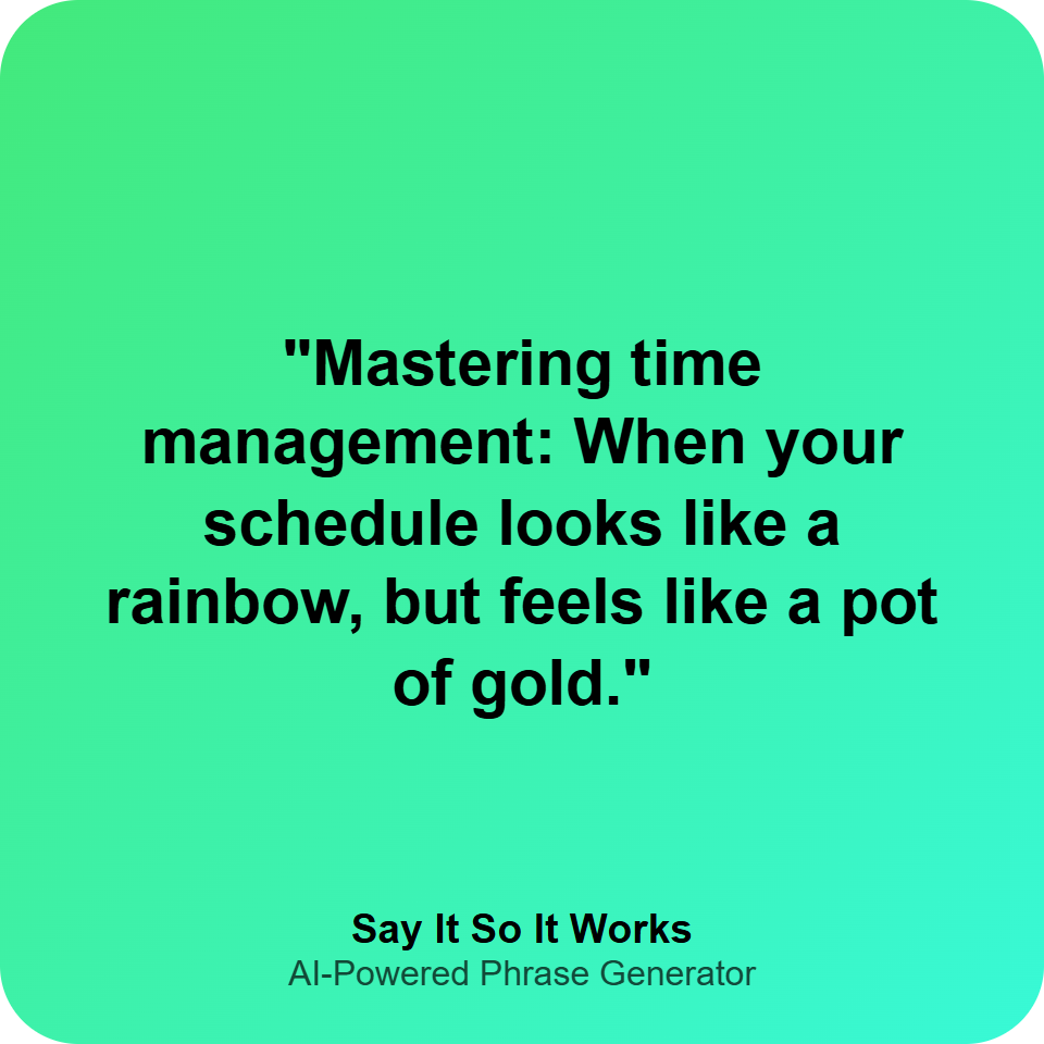 "Mastering time management: When your schedule looks like a rainbow, but feels like a pot of gold."