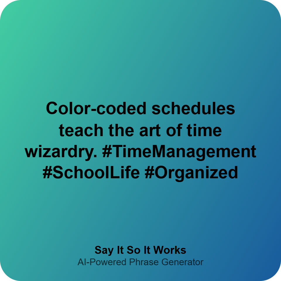 Color-coded schedules teach the art of time wizardry. #TimeManagement #SchoolLife #Organized