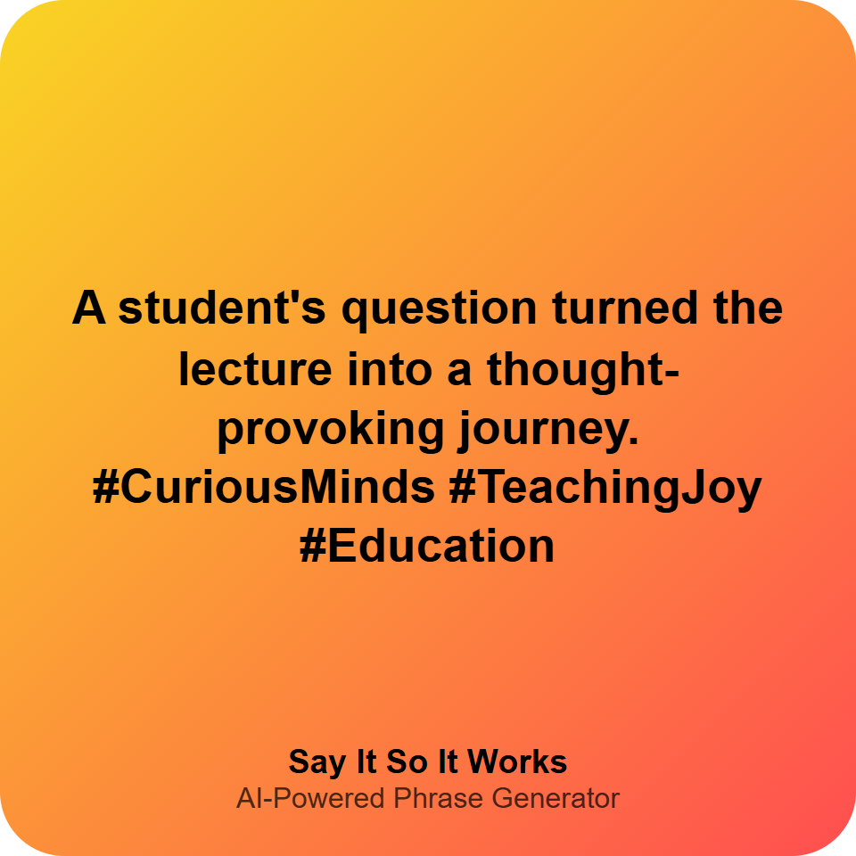 A student's question turned the lecture into a thought-provoking journey. #CuriousMinds #TeachingJoy #Education