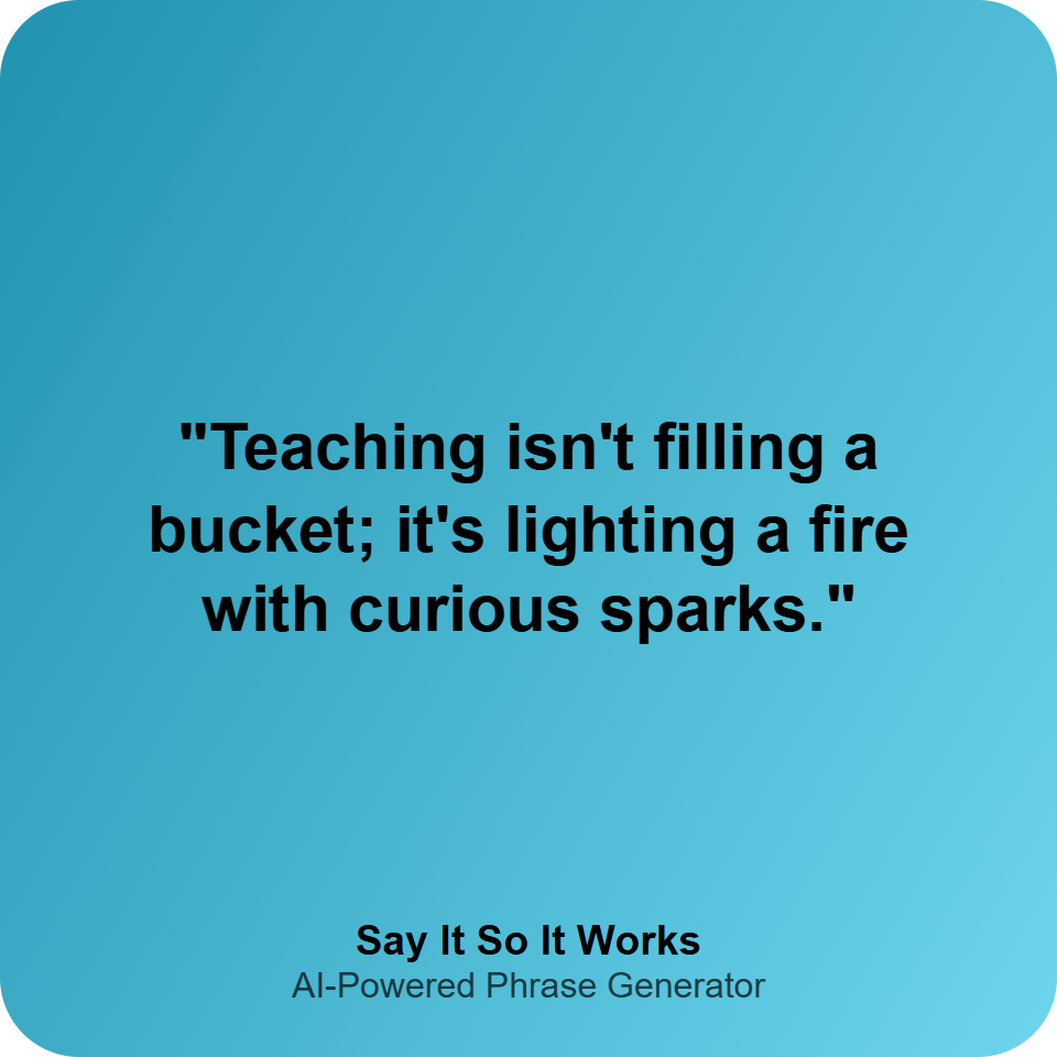 "Teaching isn't filling a bucket; it's lighting a fire with curious sparks."