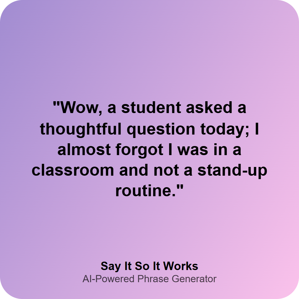 "Wow, a student asked a thoughtful question today; I almost forgot I was in a classroom and not a stand-up routine."