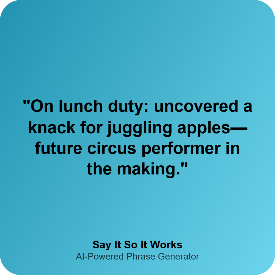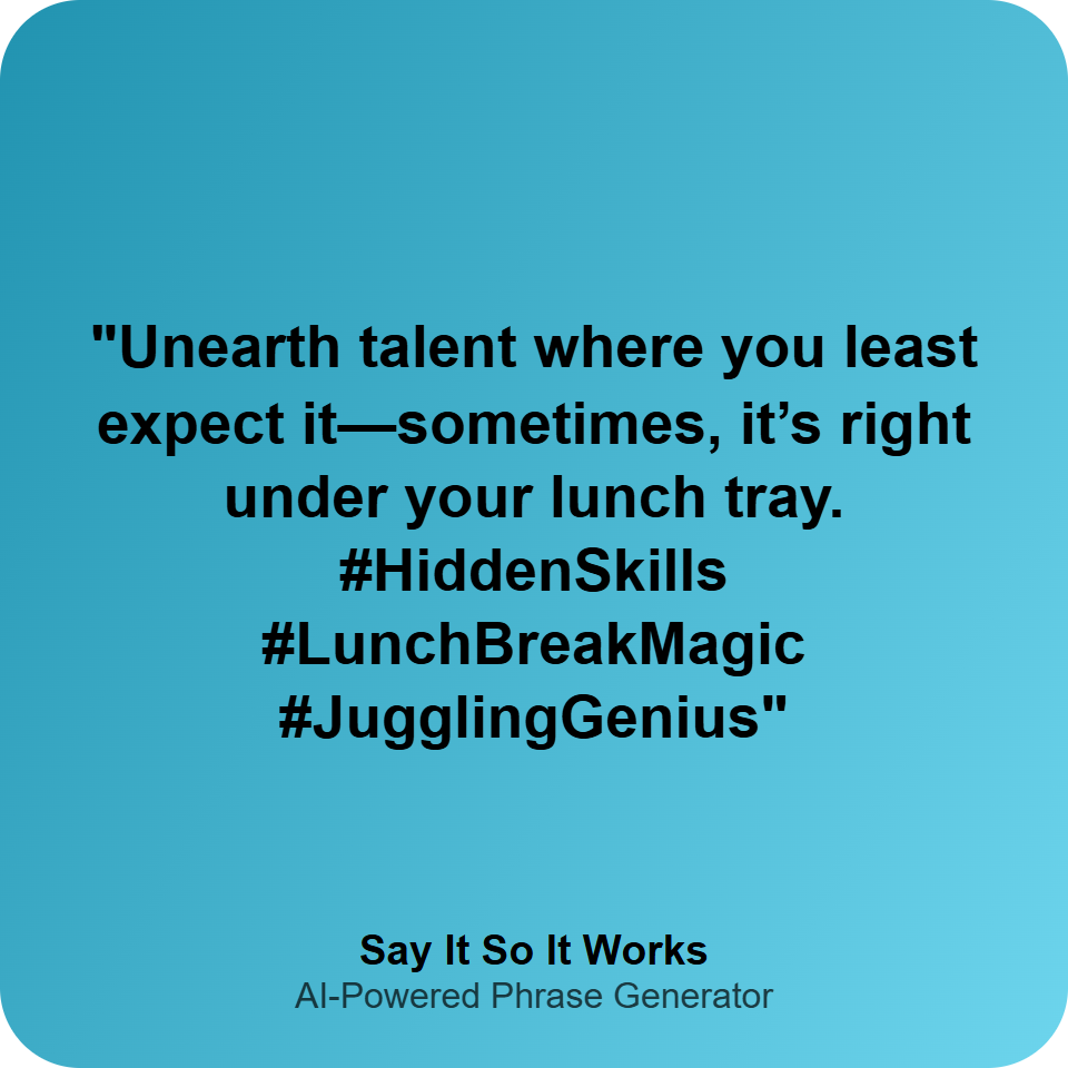 "Unearth talent where you least expect it—sometimes, it’s right under your lunch tray. #HiddenSkills #LunchBreakMagic #JugglingGenius"