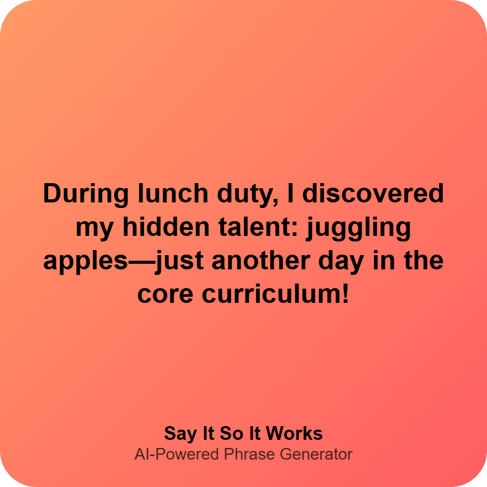 During lunch duty, I discovered a hidden talent for juggling apples.