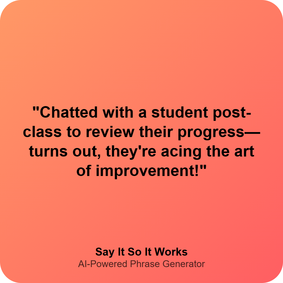 "Chatted with a student post-class to review their progress—turns out, they're acing the art of improvement!"