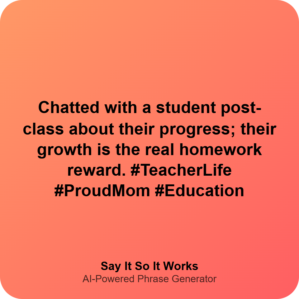 Chatted with a student post-class about their progress; their growth is the real homework reward. #TeacherLife #ProudMom #Education