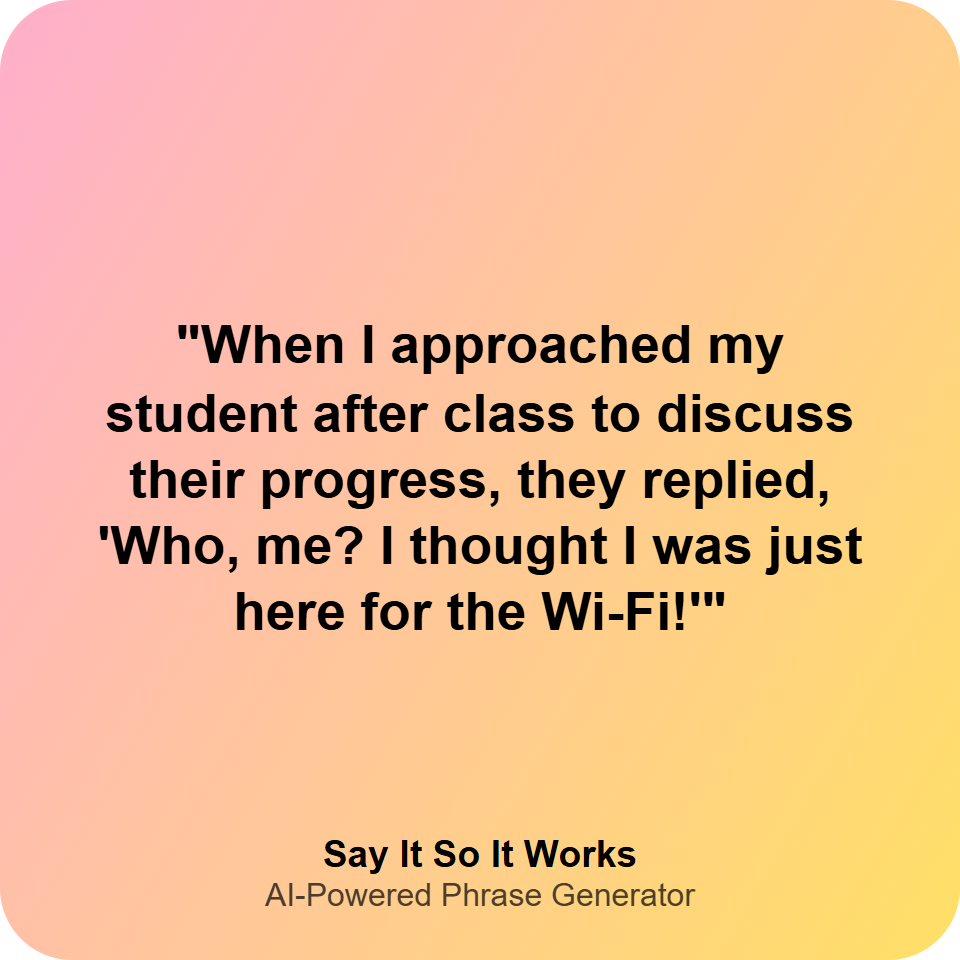 "When I approached my student after class to discuss their progress, they replied, 'Who, me? I thought I was just here for the Wi-Fi!'"