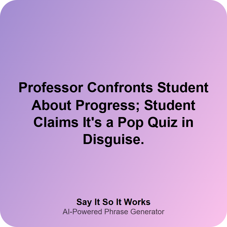 Professor Confronts Student About Progress; Student Claims It's a Pop Quiz in Disguise.