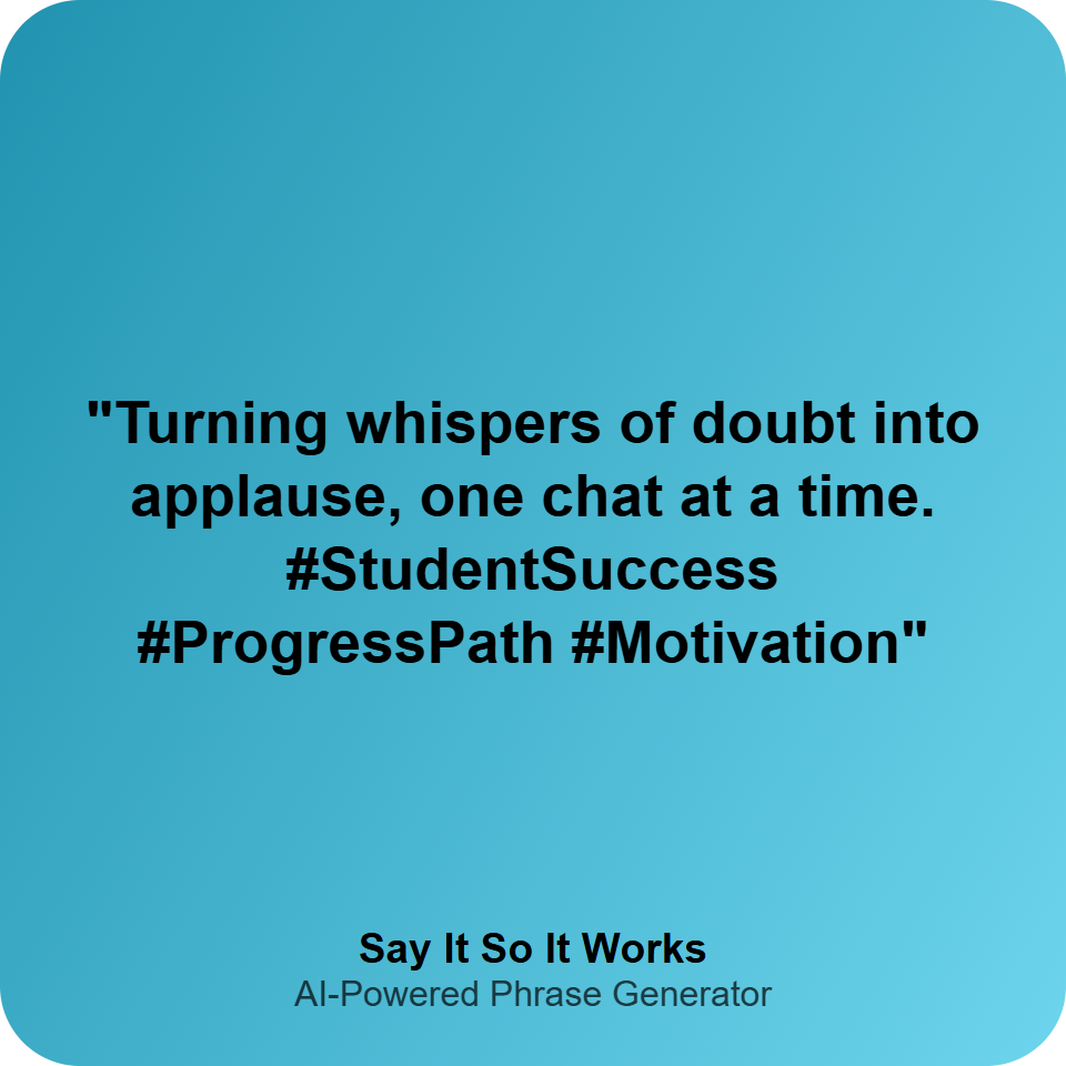 "Turning whispers of doubt into applause, one chat at a time. #StudentSuccess #ProgressPath #Motivation"