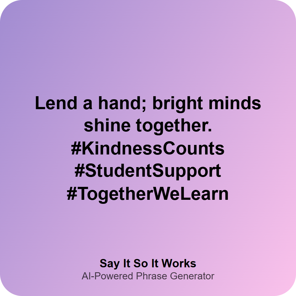 Lend a hand; bright minds shine together. #KindnessCounts #StudentSupport #TogetherWeLearn