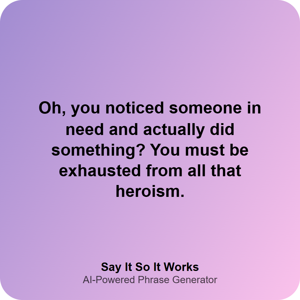 Oh, you noticed someone in need and actually did something? You must be exhausted from all that heroism.