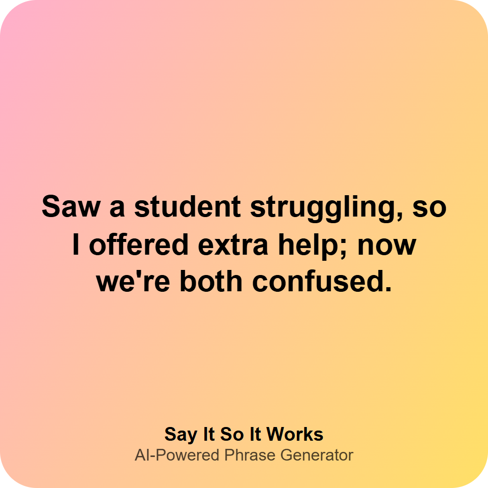 Saw a student struggling, so I offered extra help; now we're both confused.