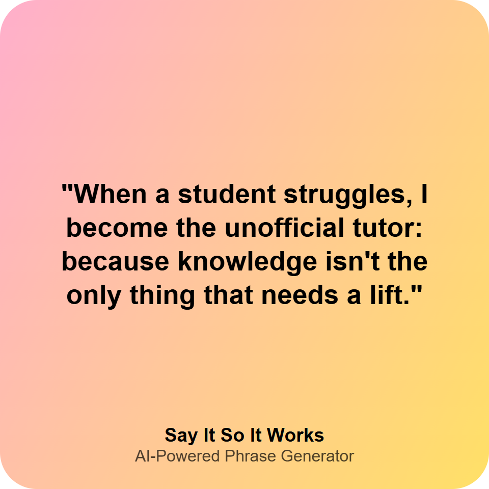 "When a student struggles, I become the unofficial tutor: because knowledge isn't the only thing that needs a lift."