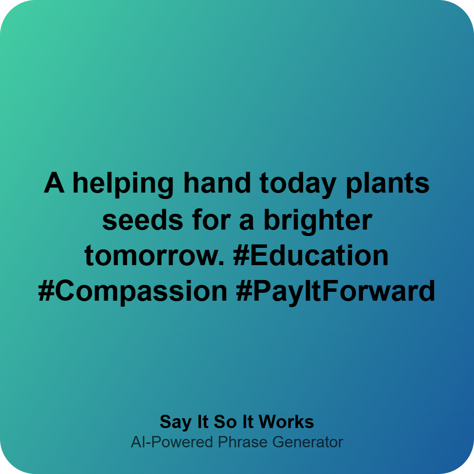 A helping hand today plants seeds for a brighter tomorrow. #Education #Compassion #PayItForward