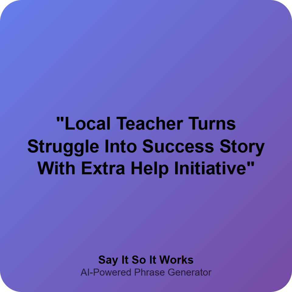 "Local Teacher Turns Struggle Into Success Story With Extra Help Initiative"