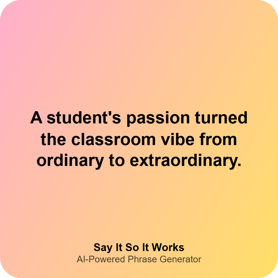 A student's passion turned the classroom vibe from ordinary to extraordinary.