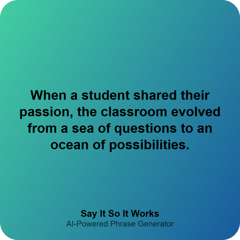 When a student shared their passion, the classroom evolved from a sea of questions to an ocean of possibilities.
