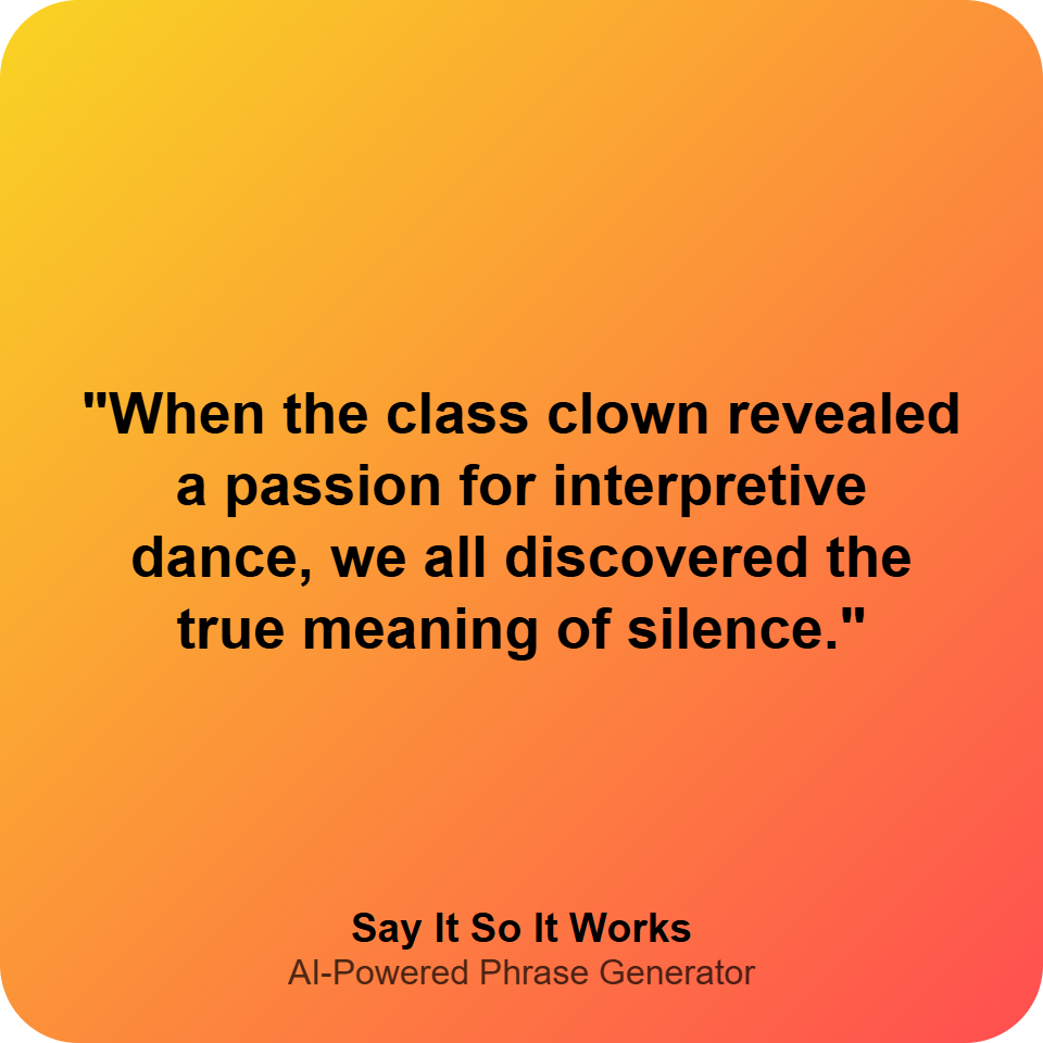 "When the class clown revealed a passion for interpretive dance, we all discovered the true meaning of silence."