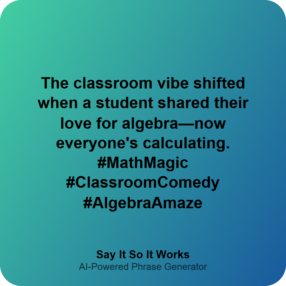 The classroom vibe shifted when a student shared their love for algebra—now everyone's calculating. #MathMagic #ClassroomComedy #AlgebraAmaze