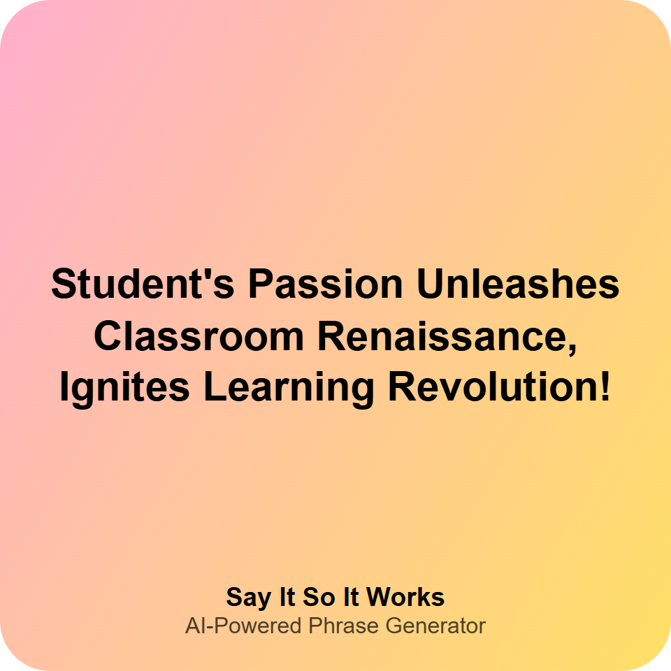 Student's Passion Unleashes Classroom Renaissance, Ignites Learning Revolution!