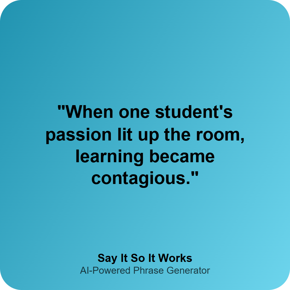 "When one student's passion lit up the room, learning became contagious."