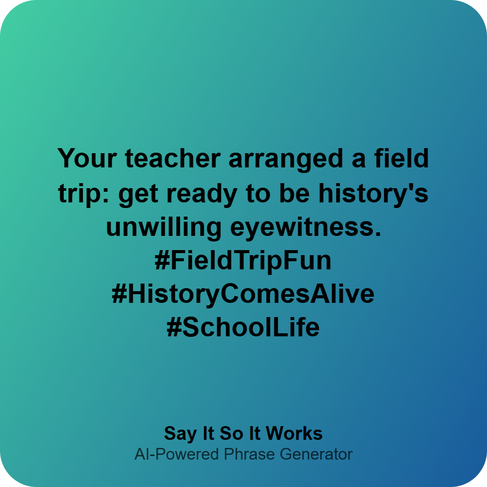 Your teacher arranged a field trip: get ready to be history's unwilling eyewitness. #FieldTripFun #HistoryComesAlive #SchoolLife