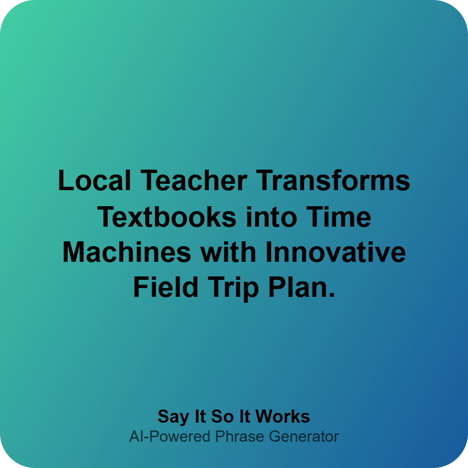 Local Teacher Transforms Textbooks into Time Machines with Innovative Field Trip Plan.