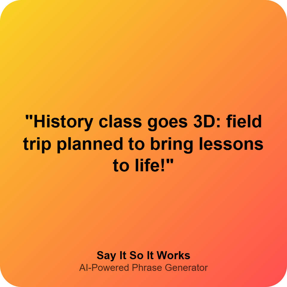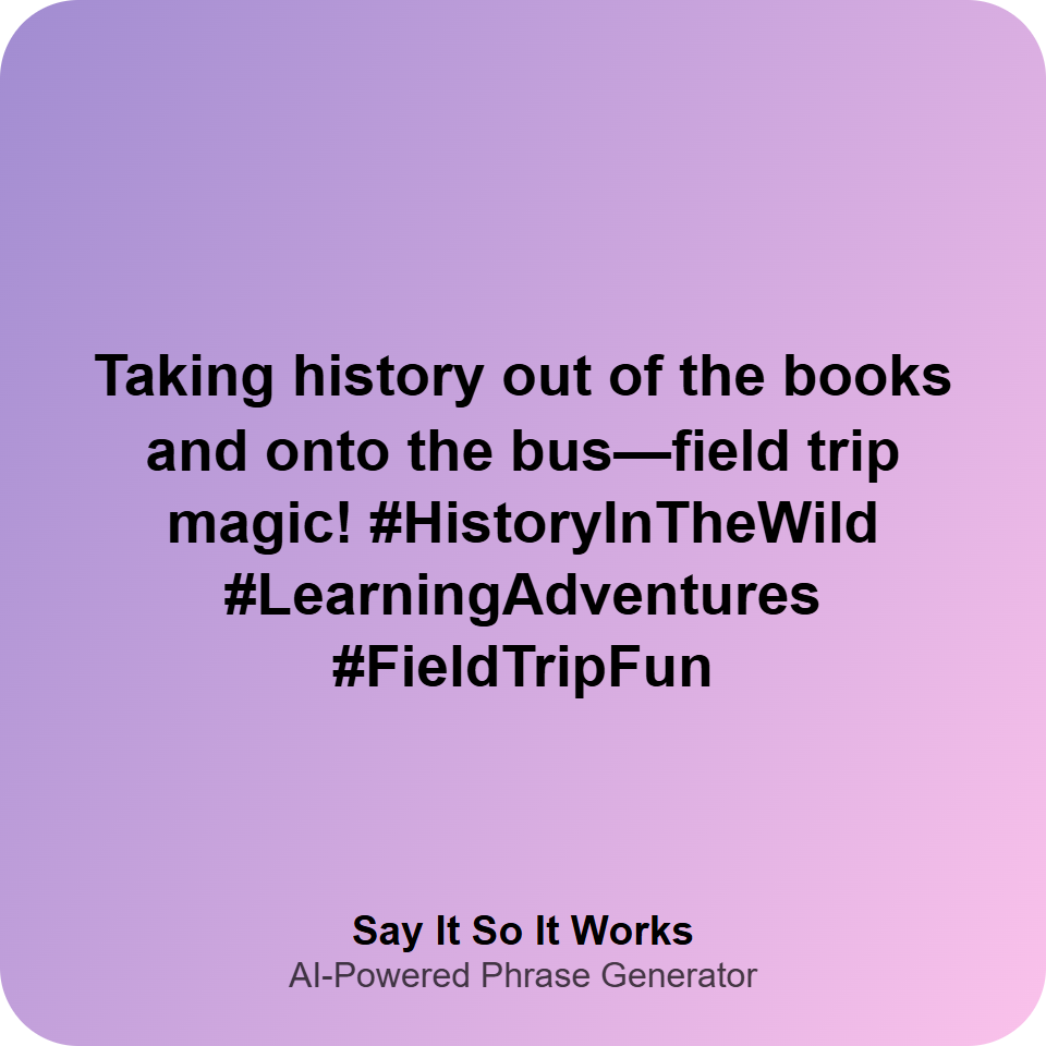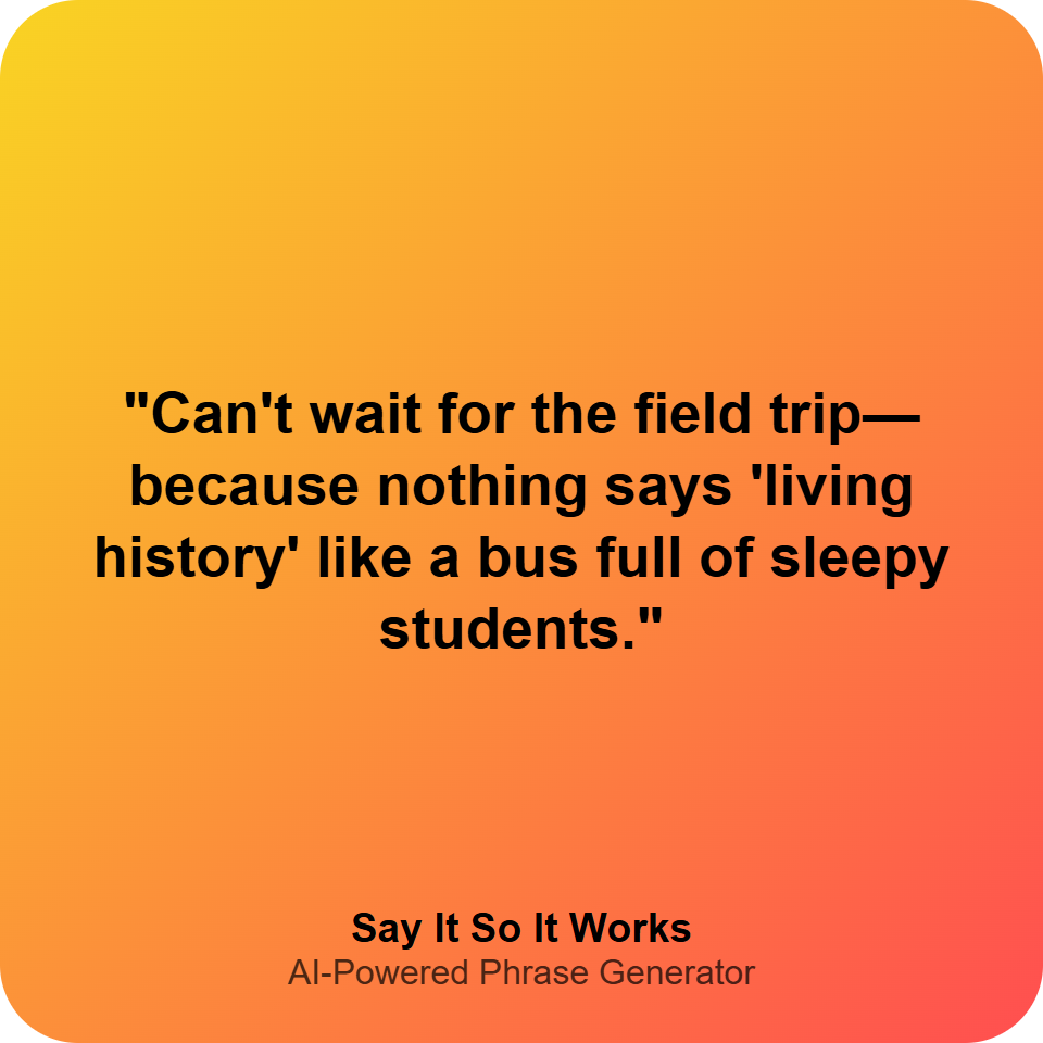 "Can't wait for the field trip—because nothing says 'living history' like a bus full of sleepy students."