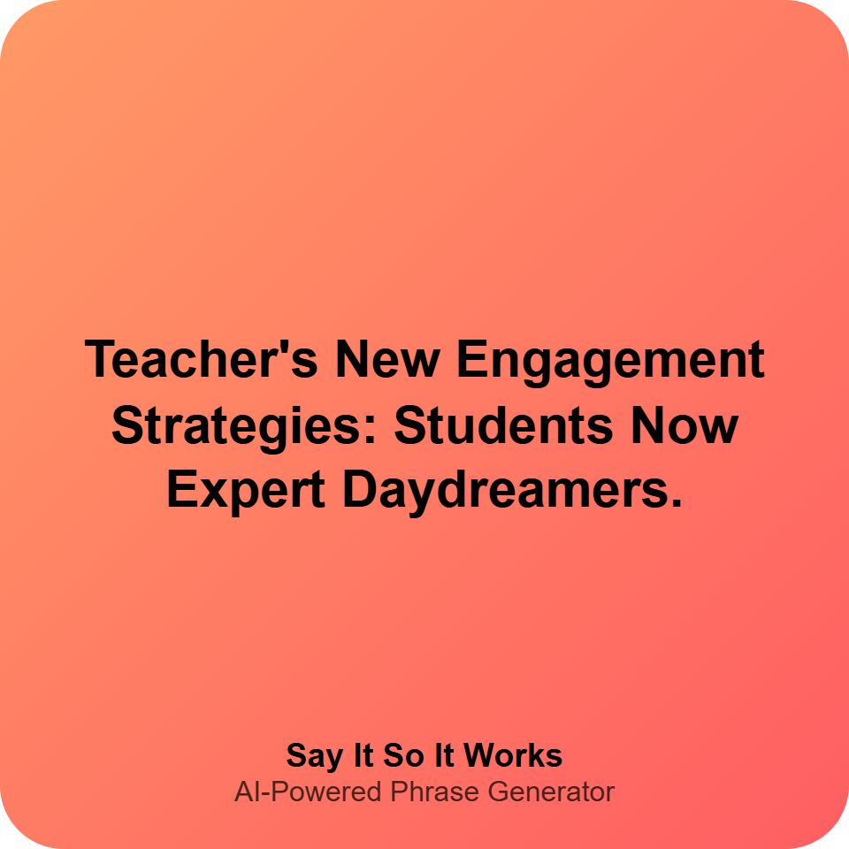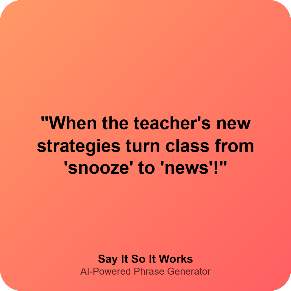 "When the teacher's new strategies turn class from 'snooze' to 'news'!"