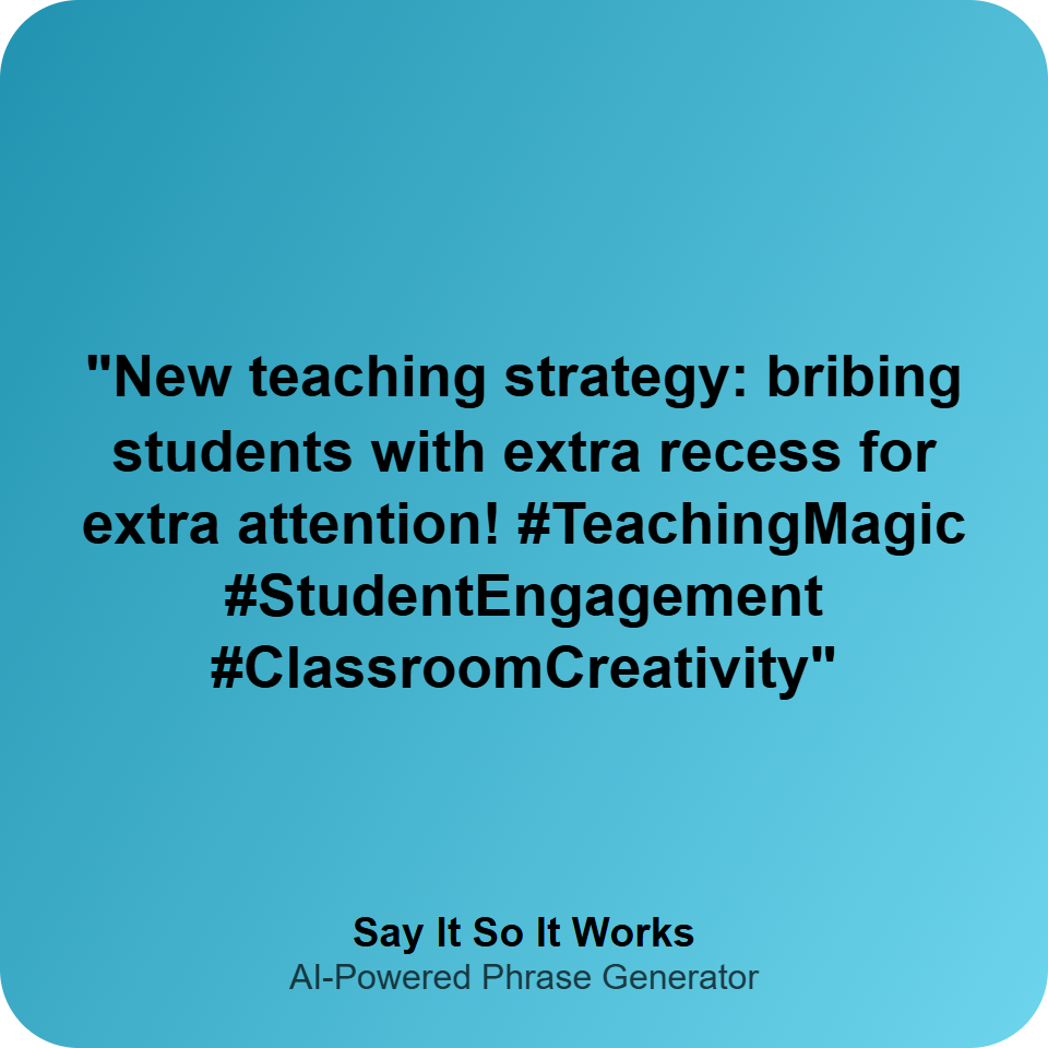"New teaching strategy: bribing students with extra recess for extra attention! #TeachingMagic #StudentEngagement #ClassroomCreativity"
