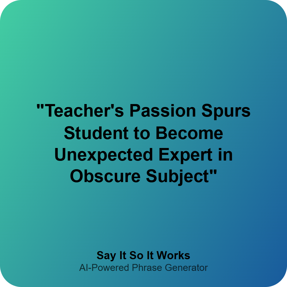 "Teacher's Passion Spurs Student to Become Unexpected Expert in Obscure Subject"