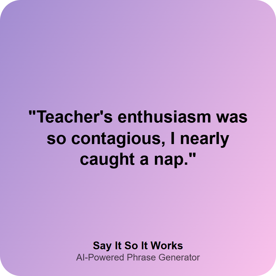 "Teacher's enthusiasm was so contagious, I nearly caught a nap."